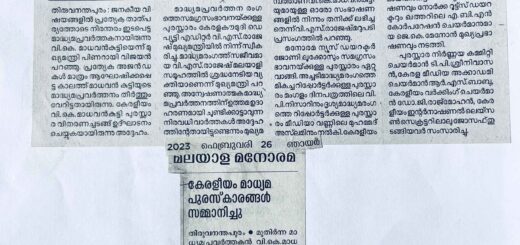 വി. കെ. മാധവൻകുട്ടി മാധ്യമ പുരസ്കാരം – 2019 ഫോട്ടോഗ്യാലറി March 6, 2021 by admin · Published March 6, 2021